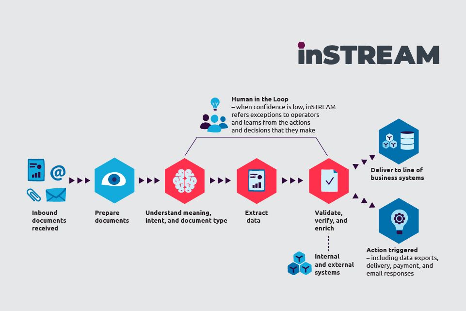 inSTREAM learns from every transaction it processes, and as the volume of documents increases, its confidence and accuracy improve to a point where straight-through processing is achieved with no need for reprogramming. As inSTREAM’s confidence and accuracy increases, the amount of interaction needed with humans decreases, enabling Capgemini’s customers to focus on more value-based tasks.